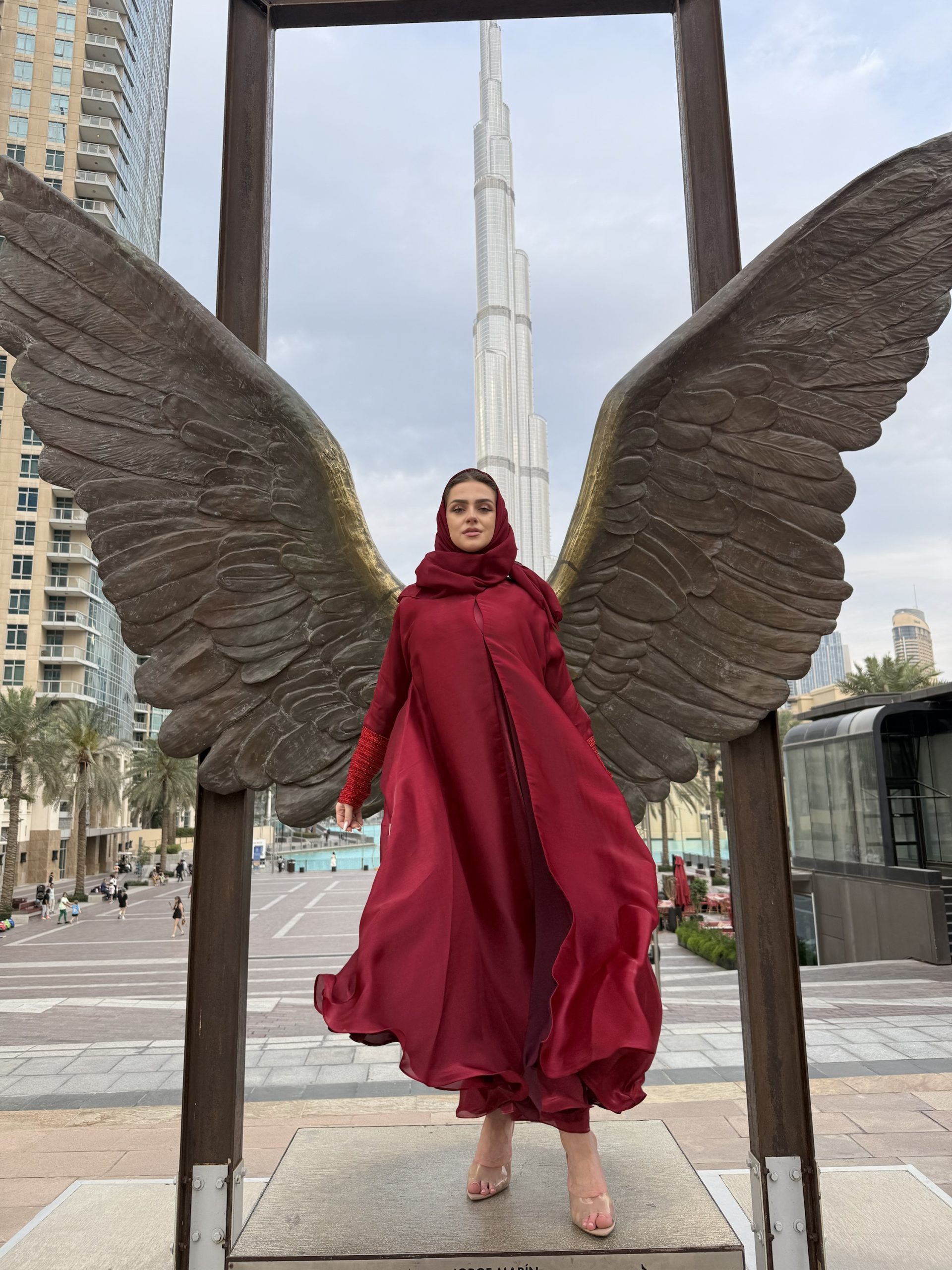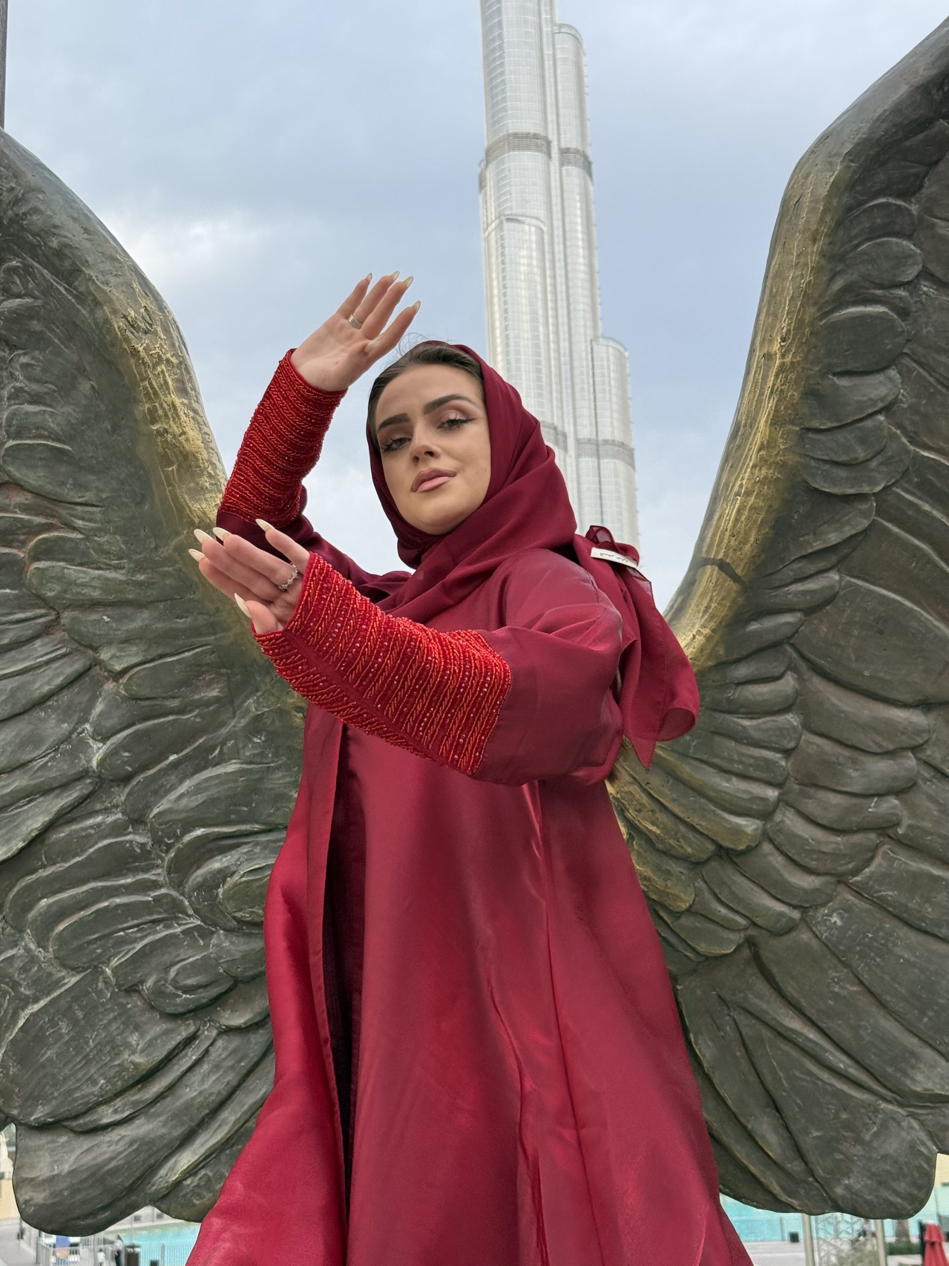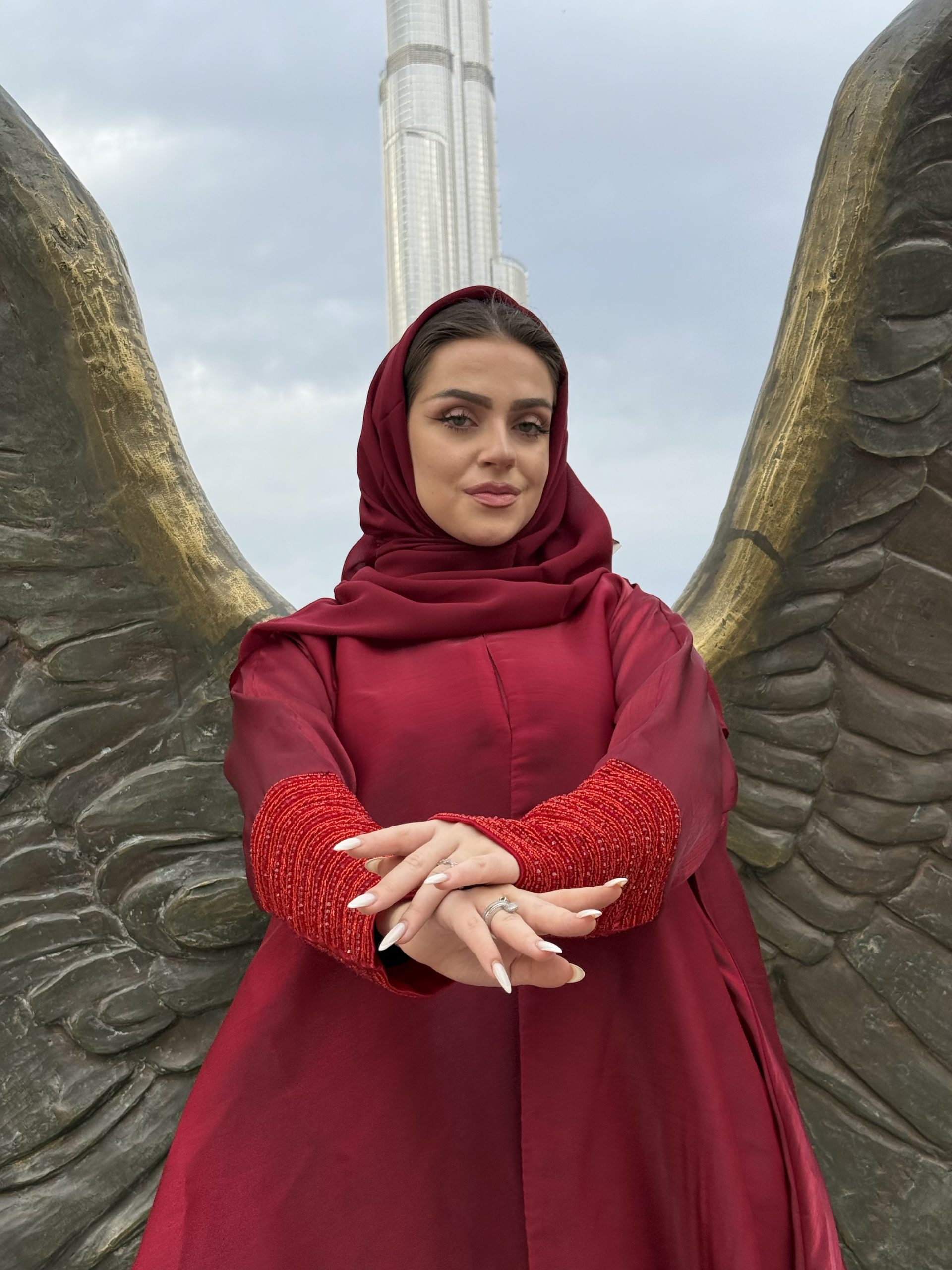 Red floral abaya
