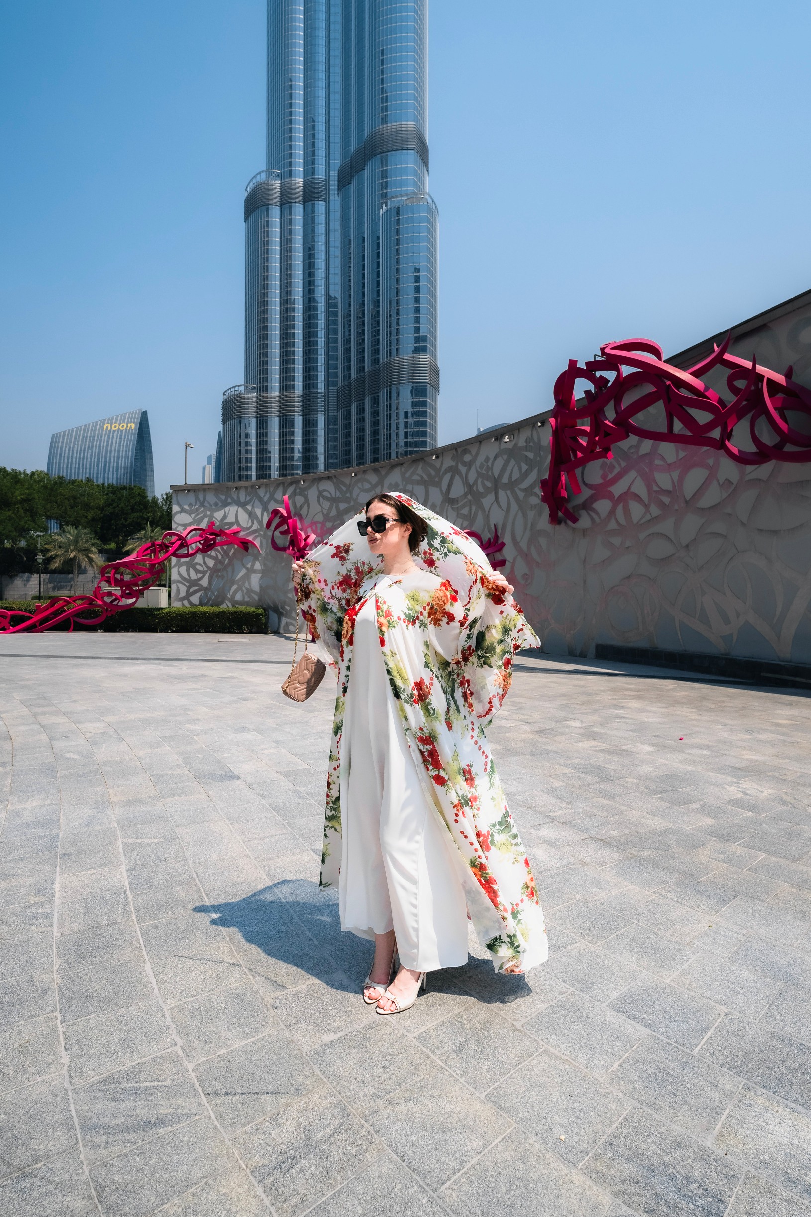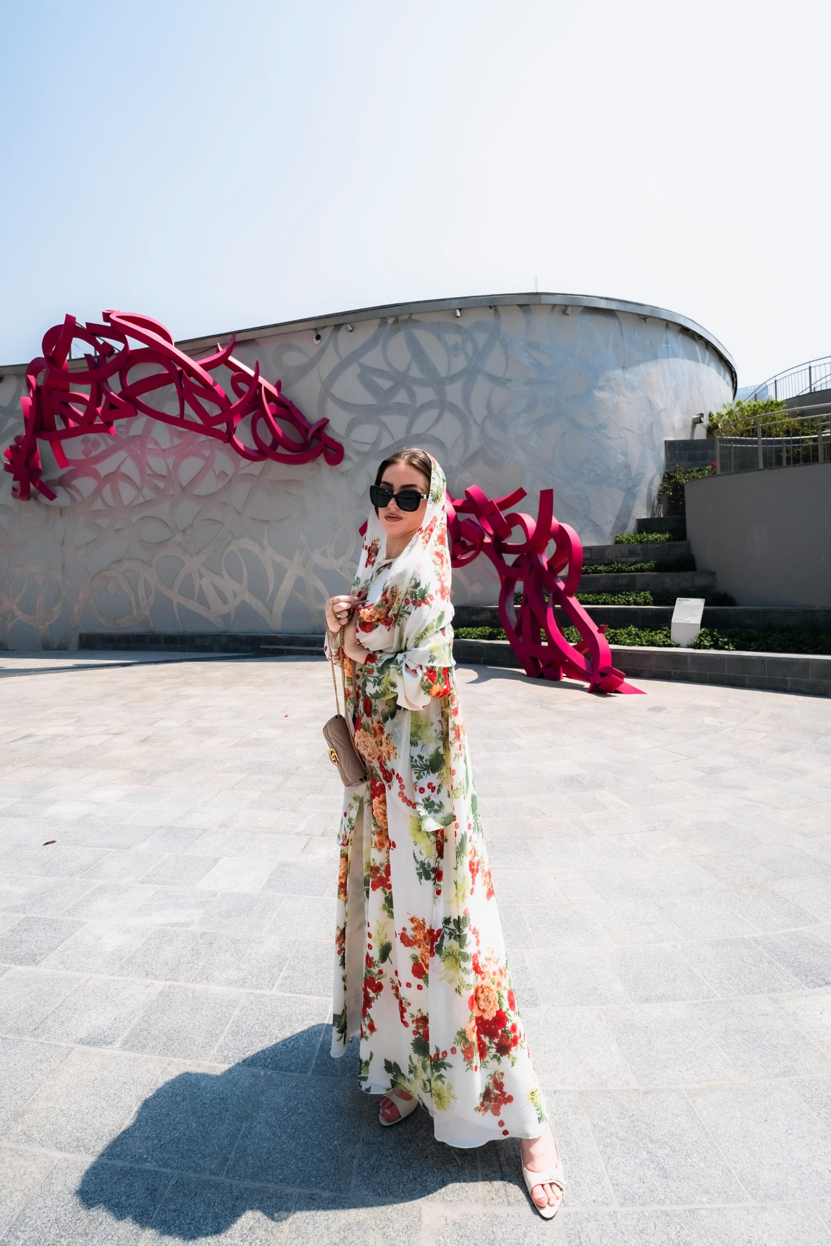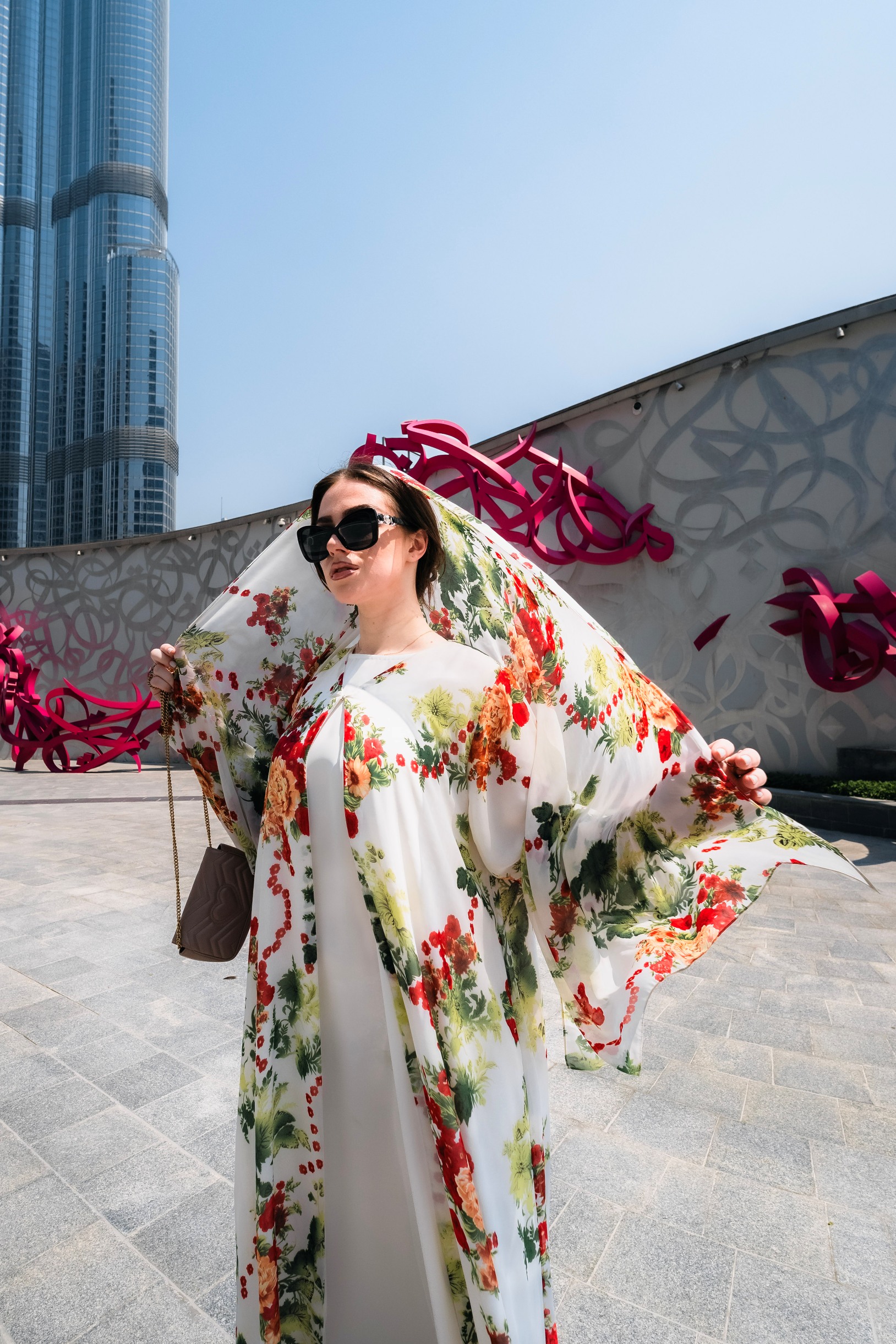 Red floral abaya